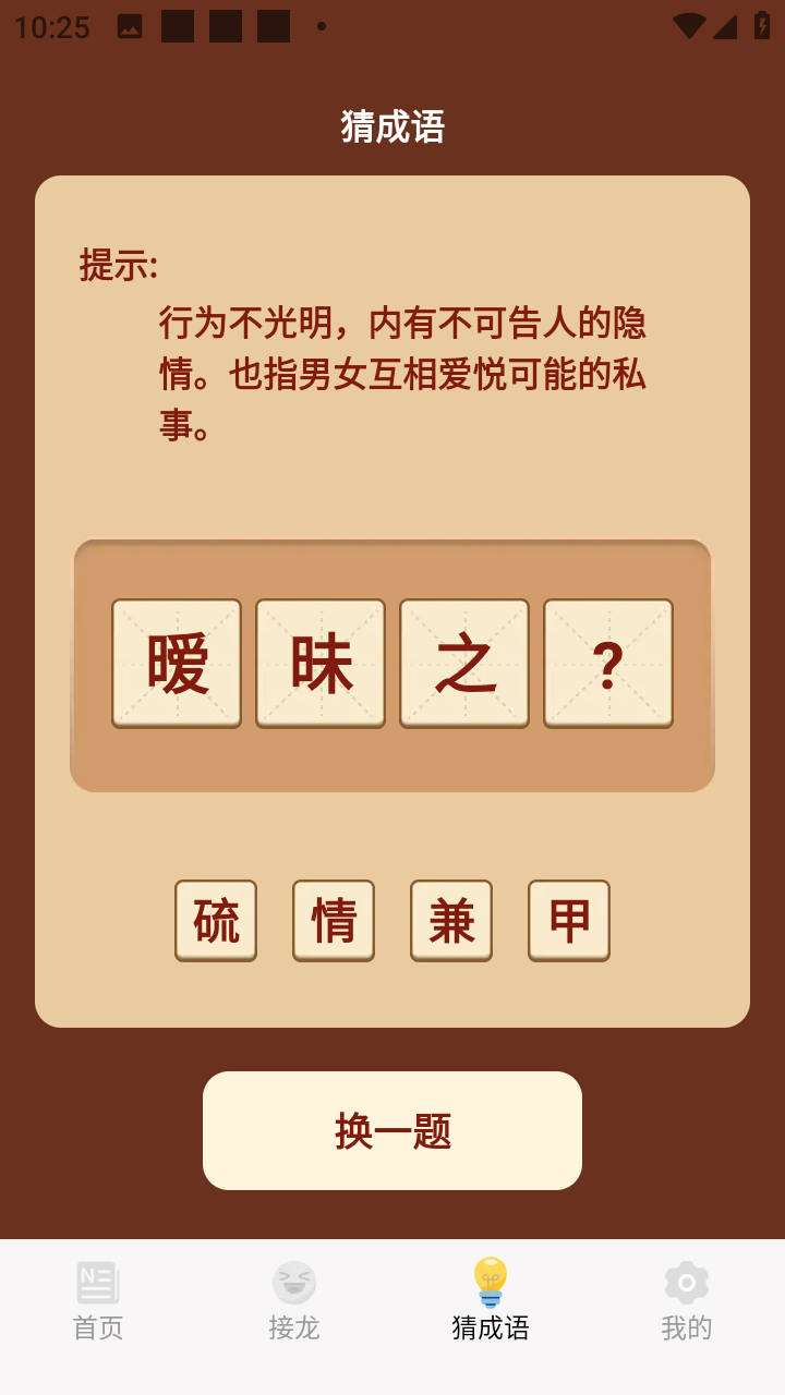 这是一款娱乐学习软件,该软件以成语为基础,设计了多种多样围绕成语的玩法,如猜成语、成语接龙、成语故事等,是一款训练思维的必备软件