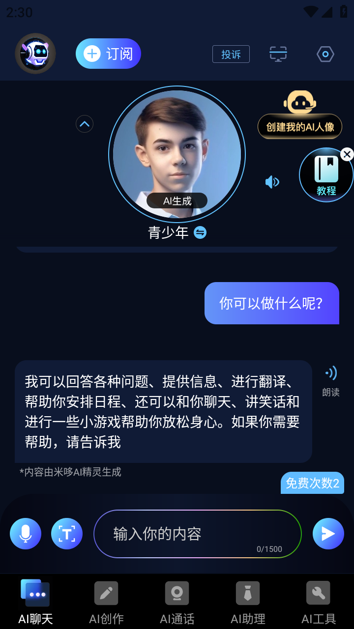 这是一款智能聊天对话、智能写作文章和AI绘画生成的软件。可以随时随地与它对话帮你解决各式各样的难题;也可以随时随地和它交谈聊天,几乎能够回答你提出的所有问题。