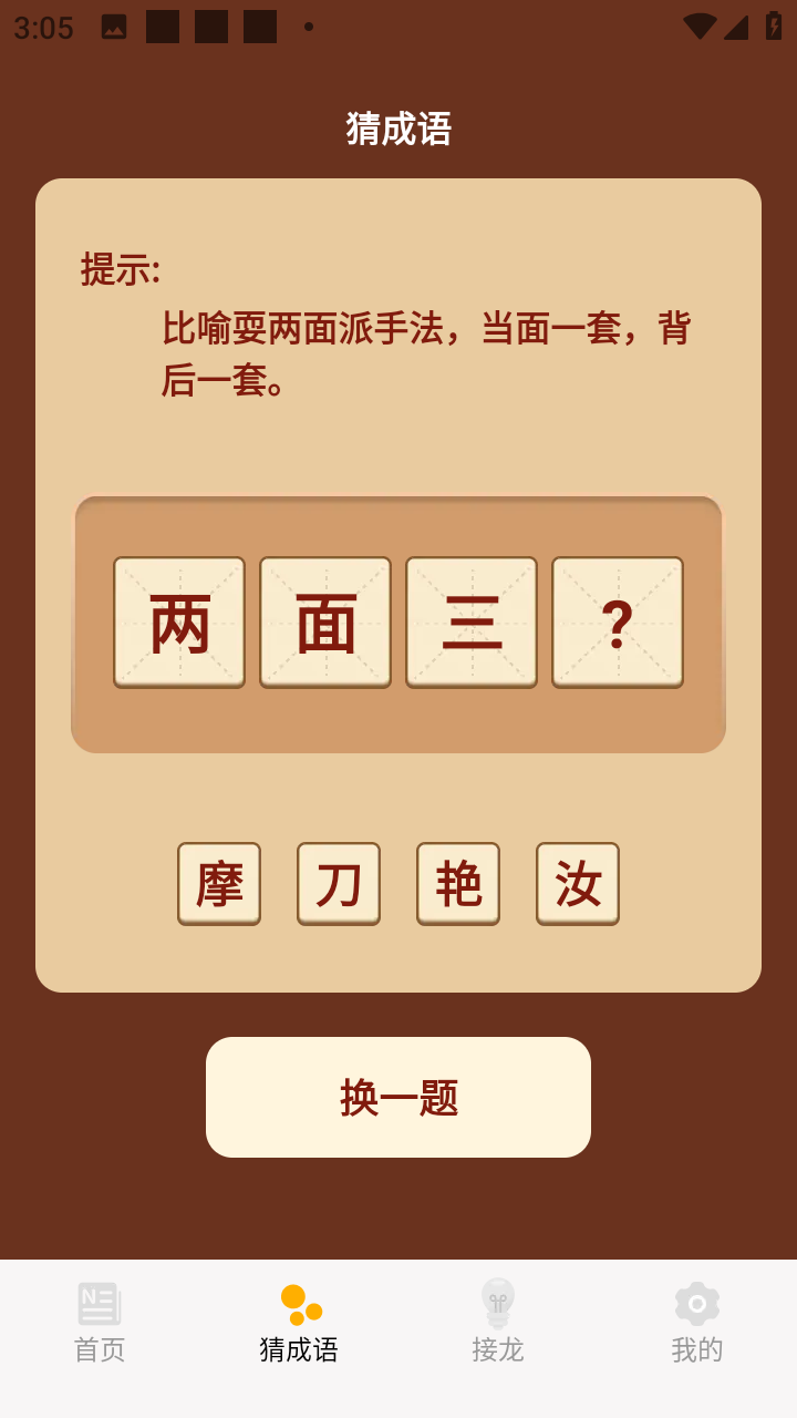 这是一款娱乐学习软件,该软件以成语为基础,设计了多种多样围绕成语的玩法,如猜成语、成语接龙、成语故事等,是一款训练思维的必备软件。